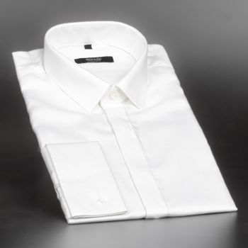 Luxusní pánská košile na manžetové knoflíčky ANREDE Šohaj Strážnice, bílá hladká 6176, dlouhý rukáv (comfort fit + slim-fit)