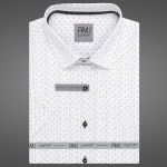 Pánská košile AMJ bavlněná, bílá vzorovaná, VDSBR1317, dlouhý rukáv slim fit, vel. 43