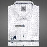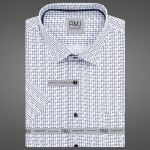 Pánská košile AMJ bavlněná, bílá s tmavě modrými kosočtverci, VKBR1380, krátký rukáv, (regular + slim fit)