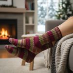 Vlněné, teplé zimní dámské ponožky IVKA 615/4 růžovo-zelený proužek, vysoké (více velikostí)
