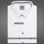 Pánská košile AMJ bavlněná, bílá, modrozlaté tečky a čárky, VKBR1452, krátký rukáv, (regular + slim fit)