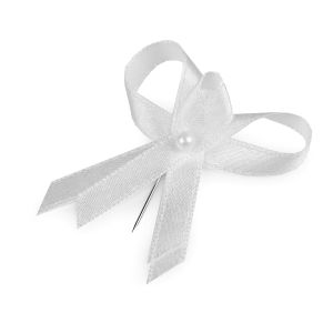 - Svatební mašlička – vývazek bílý satén s perličkou a špendlíkem, šířka 35mm (ruční výroba)15 Kč