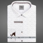 Pánská košile AMJ bavlněná, bílá vzorovaná VKBR1364, krátký rukáv, regular fit, vel. 41