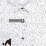Pánská košile AMJ bavlněná, bílá s modrými kvítky a tečkami VDBR1417, dlouhý rukáv (regular + slim-fit + prodloužený slim-fit)