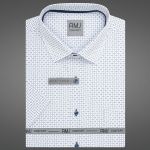 Pánská košile AMJ bílá s vetkávaným vzorem VK838, krátký rukáv (regular + slim fit)