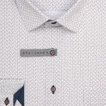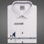 Pánská košile AMJ bavlněná, bílá s modro béžovým vzorem VDSBR1462, dlouhý rukáv, slim-fit