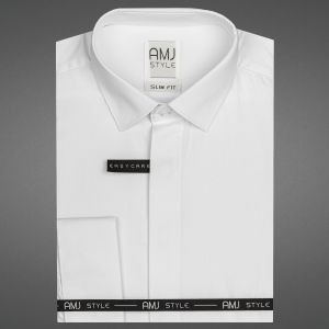 - Pánská košile AMJ na manžetové knoflíčky, bílá JDSA018MK, dlouhý rukáv, slim fitOd 976 Kč