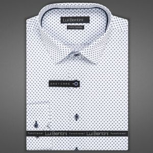 Luxusní pánská košile bavlněná se saténovou úpravou Lui Bentini PLATINUM, bílá s tmavě modrými kosočtverečky LDB240, dlouhý rukáv, (regular + slim fit)