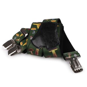 Pánské šle s houbařským vzorem hříbků v béžové barvě jsou určeny pro všechny příznivce houbaření nebo jako stylový dárek. Šle jsou s nastavitelnou délkou 120 cm, šíře 4 cm v provedení ve tvaru písmene "Y" s uchycením na žabky.